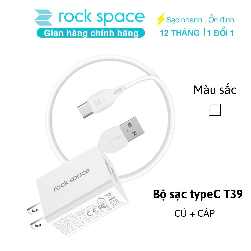 -Bộ củ cáp sạc nhanh typeC có màu trắng, dây sạc typeC Rockspace giúp sạc nhanh, ổn định.