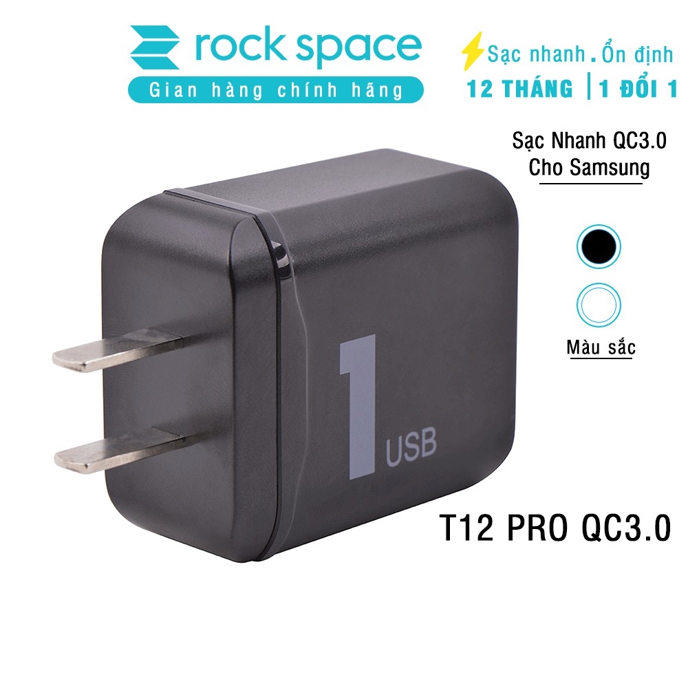 Củ sạc Rock Space T12 1A 1 cổng QC3.0 (Trắng)