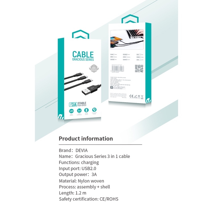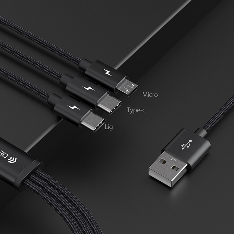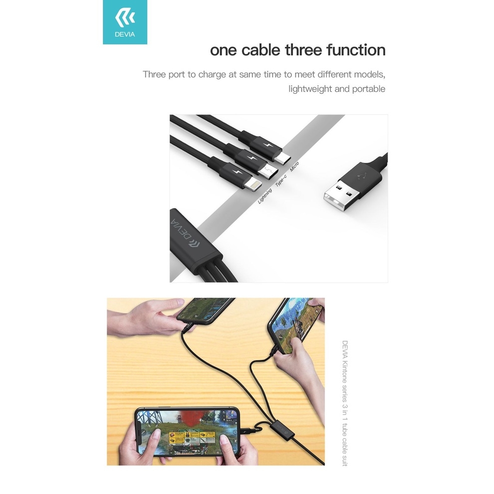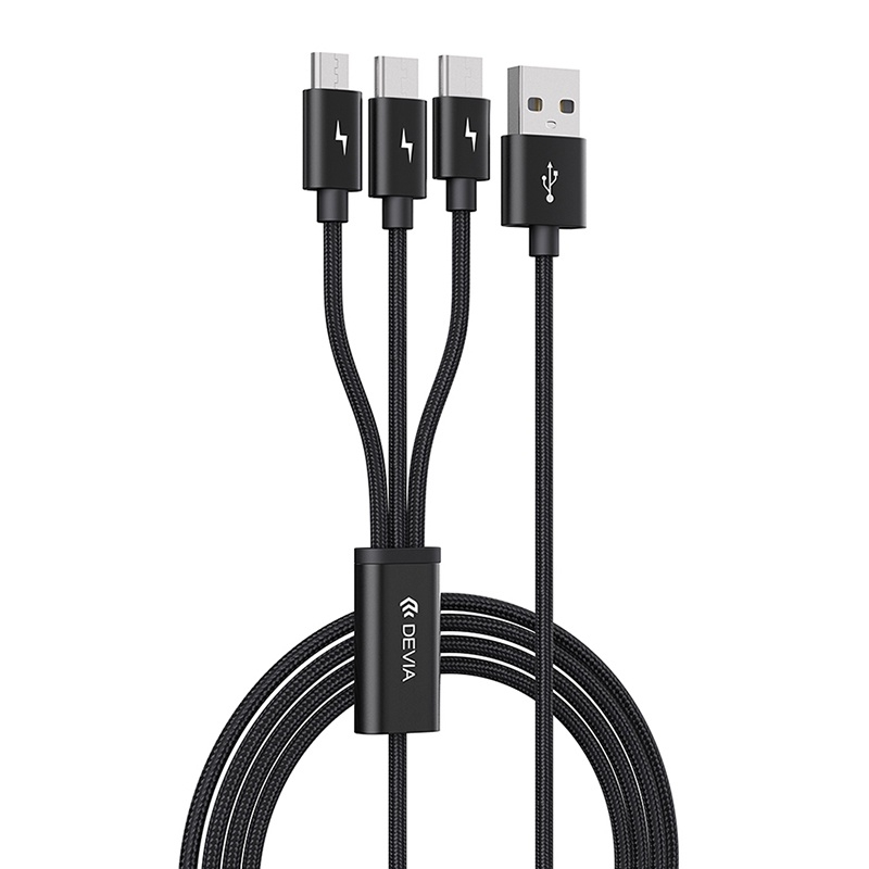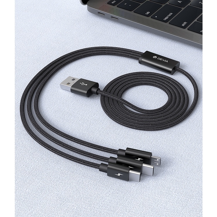 Dây Cáp Sạc ba đầu Devia dây dù, sạc 3 thiết bị cùng lúc - Hàng chính hãng Bảo hành 12 tháng