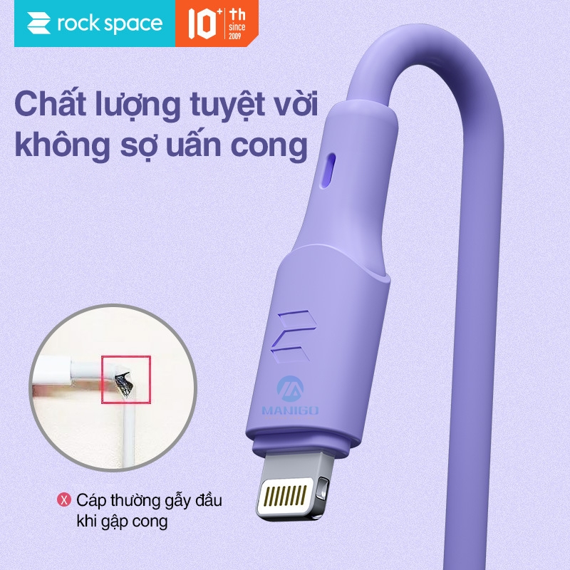 - Dây cáp sạc cho iphone Rockspace candy chuẩn lightning với chuẩn cắm USB to lightning
