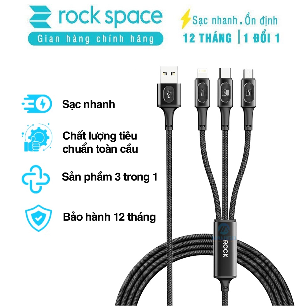 - Dây cáp sạc nhanh 3 đầu iphone typeC micro Rock Touch Series dây dù 3 cổng Lightning / Micro USB/ chuẩn C bạn có thể sạc nhanh cùng lúc cho 3 thiết bị khác nhau iphone/ samsung, oppo....