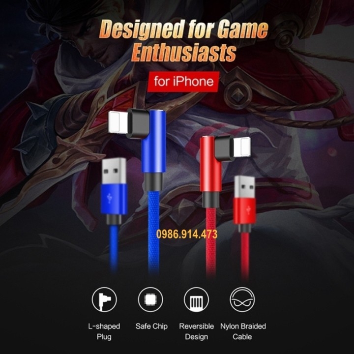 Cáp dù Rock cho iphone đầu kim loại chữ L dành cho các game thủ