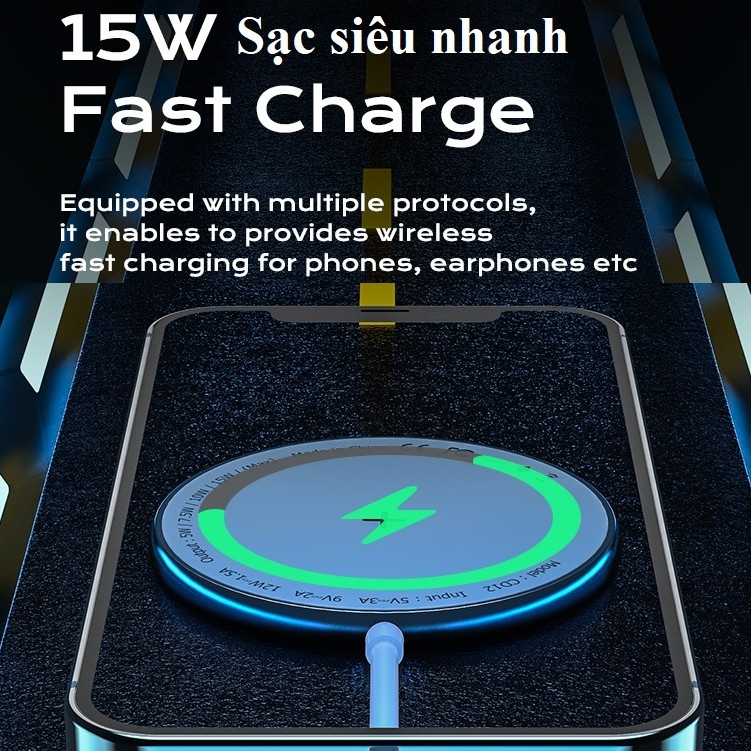 - Đế sạc không dây Magsafe sạc nhanh 15w Rockspace tự động điều chỉnh công suất phù hợp từ 5W,7.5W, 10W, 15W tương thích với nhiều dòng điện thoại