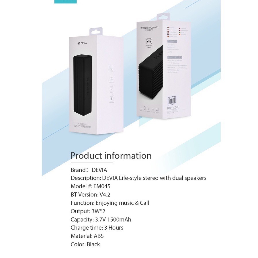 - Sản phẩm Loa không dây bluetooth DEVIA là sản phẩm chính hãng, với âm thanh nổi loa kép