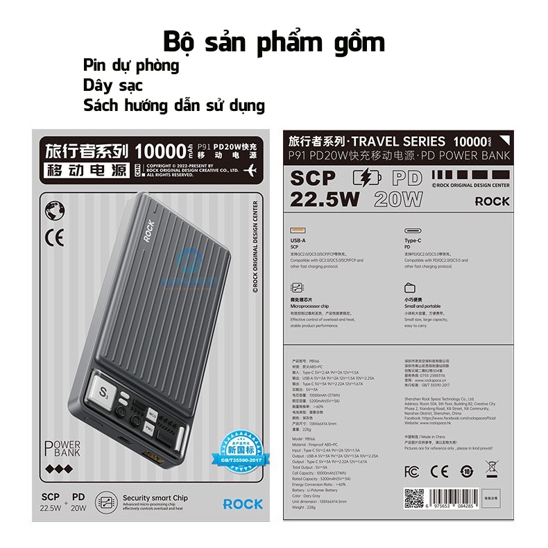 Pin dự phòng PD 20W Rockspace P91 sạc nhanh 10000mAh Hàng chính hãng bảo hành 12 tháng