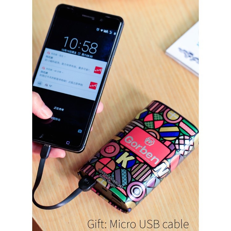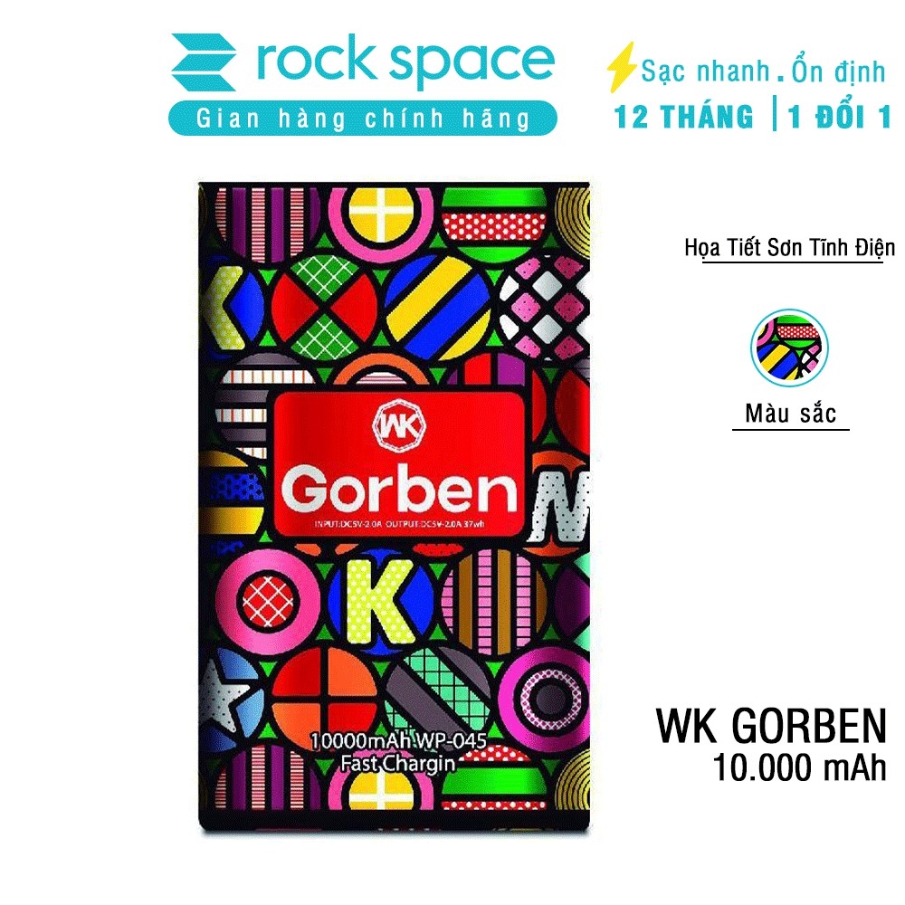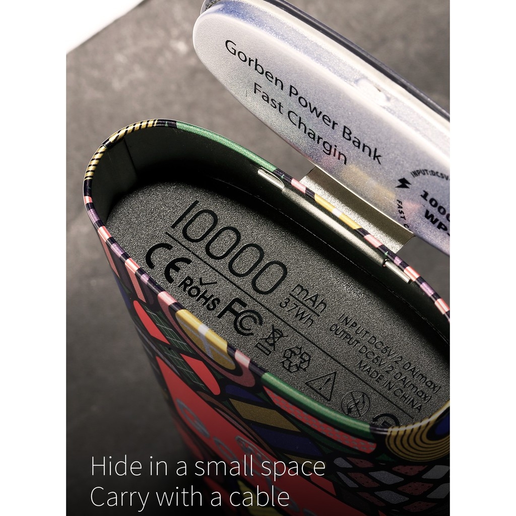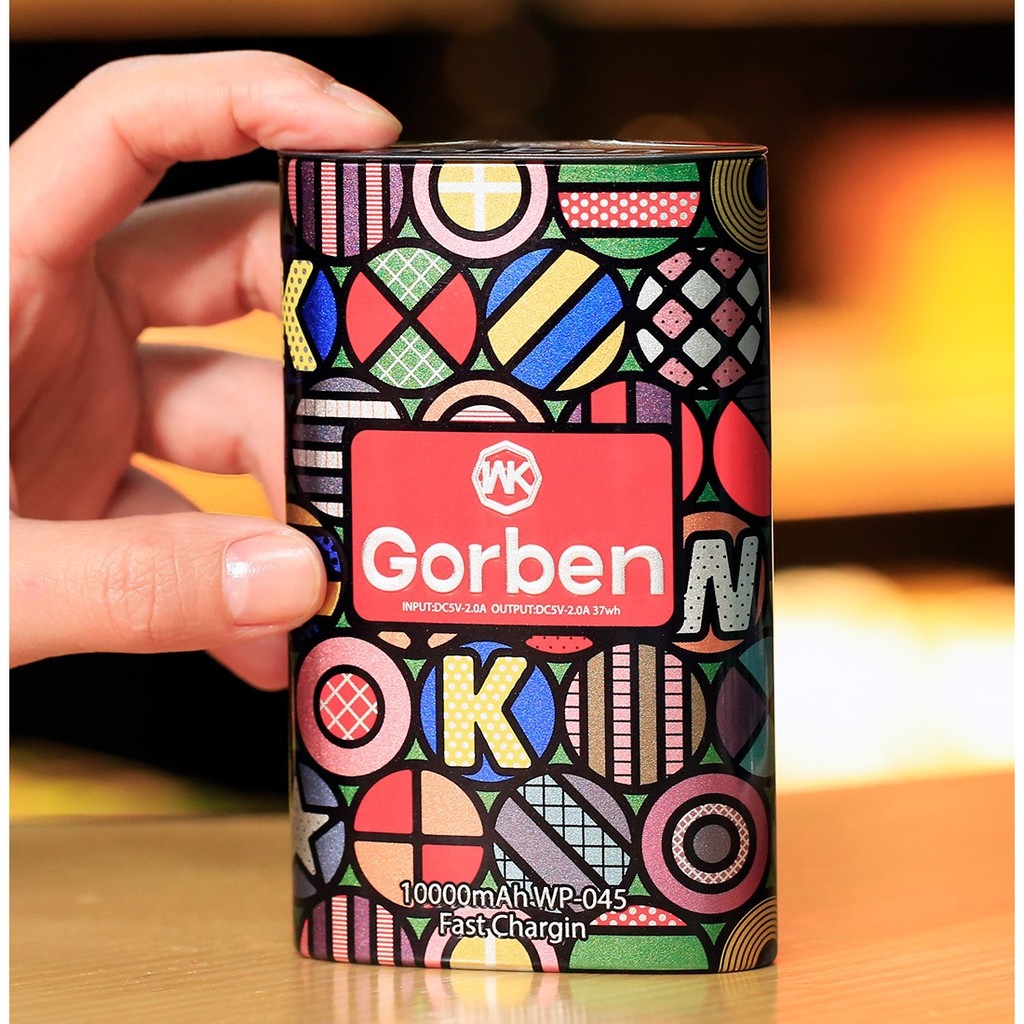 Pin dự phòng WK Gorben dung lượng 10.000 mAh với thiết kế nhôm nguyên khối được sơn tĩnh điện và trang trí họa tiết nghệ thuật như 1 tác phẩm hội họa