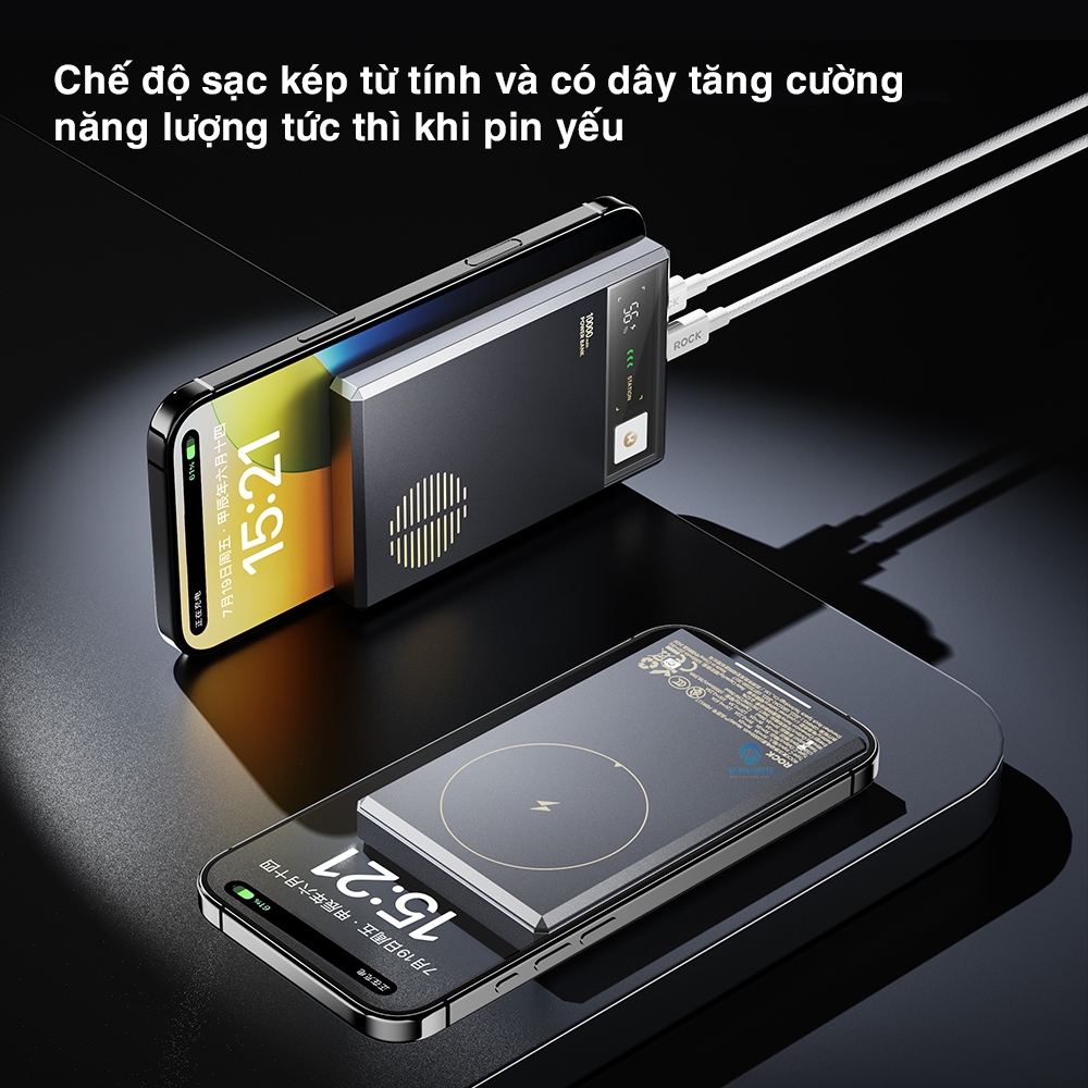 Pin sạc dự phòng không dây 10000mAh sạc nhanh PD 20W Rockspace Retro Magnetic Wireless BH 12 tháng
