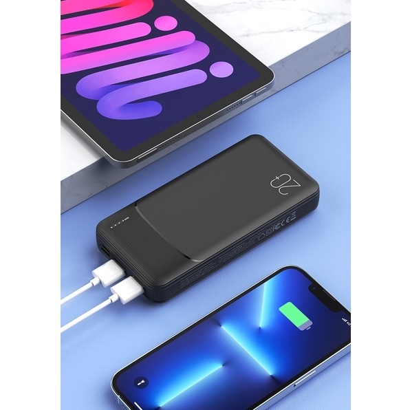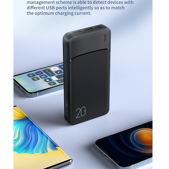 - Pin sạc dự phòng rockspacde P200 có dung lượng pin lớn 20000mAh, sử dụng được tầm 1 tuần sau khi sạc đầy. Đầu ra cổng USB kép sạc được cho nhiều thiết bị điện thoại, máy tính bảng