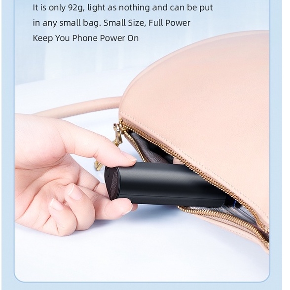 - Pin sạc dự phòng thích hợp chân cắm lightning Rockspace P82 rất nhỏ gọn chỉ với 92g có thể bỏ túi mang đi ra ngoài, đi làm, đi du lịch rất tiện lợi