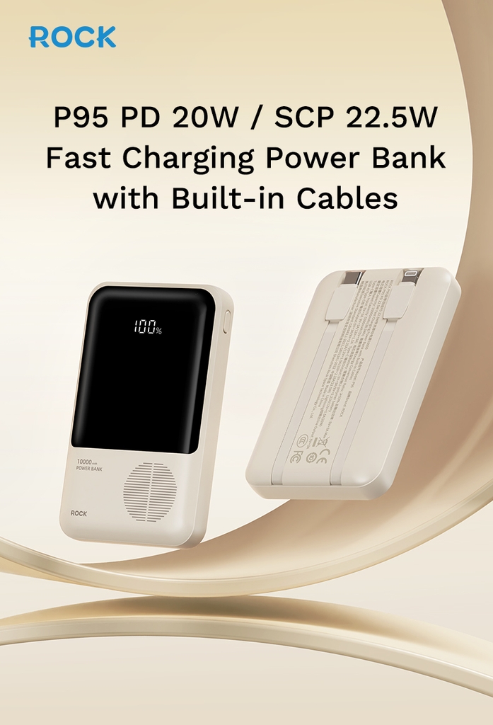 - Pin sạc dự phòng tích hợp dây sạc Rockspace P95 hỗ trợ sạc cho hầu hết tất cả các thiết bị như điện thoại, máy tính bảng, tai nghe, đồng hồ,...
