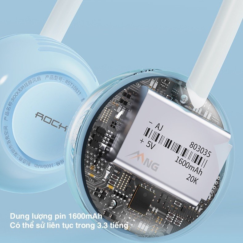 Quạt đeo cổ mini sạc tích điện Rockspace không cánh dùng liên tục 5h 3 chế độ gió hàng chính hãng