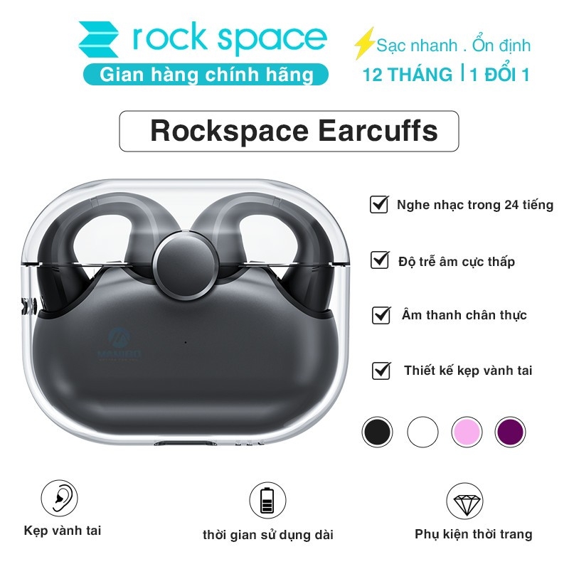 Tai nghe bluetooth không dây kẹp vành tai Rock Sound EarCuffs TWS Earphone Rockspace BH 12 tháng