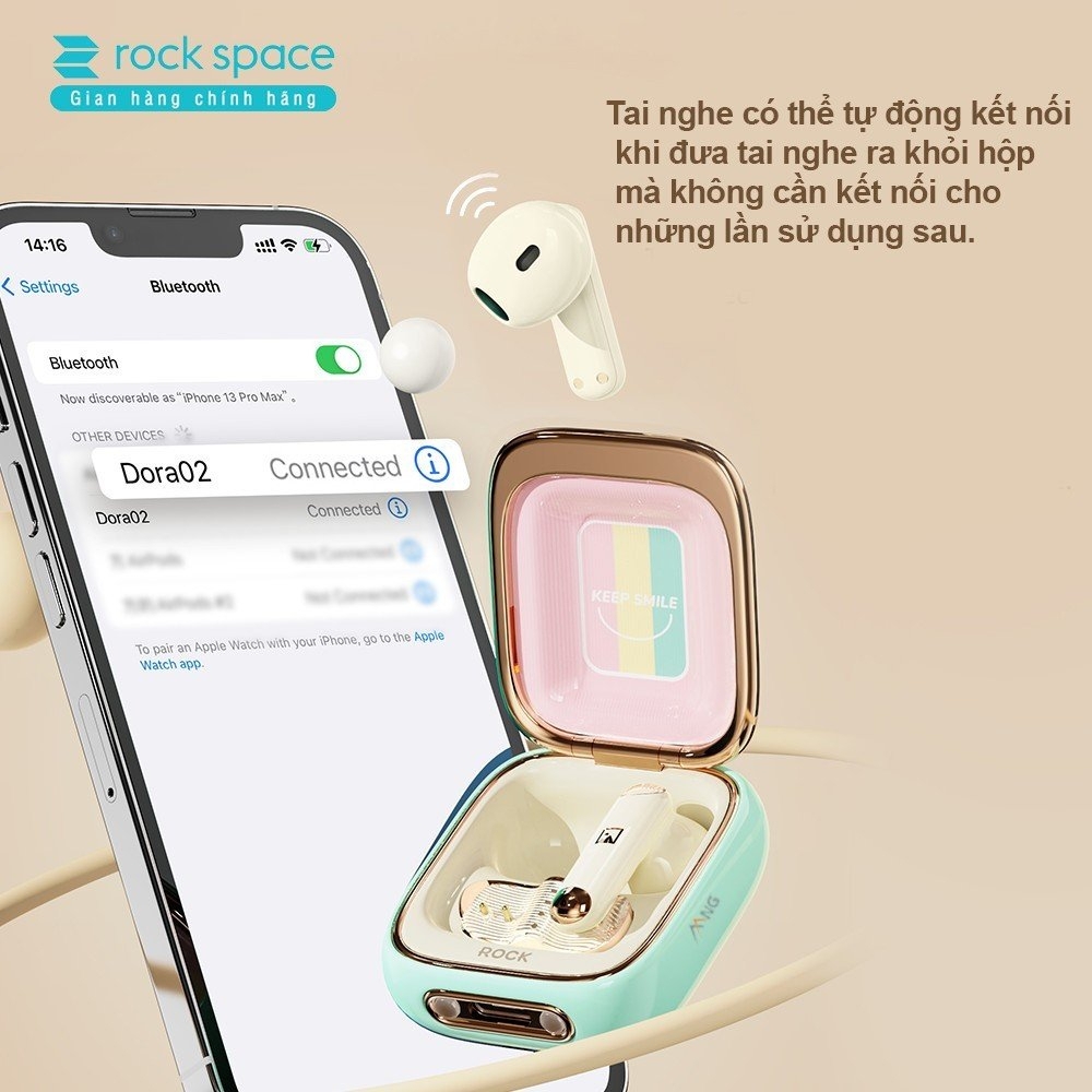 Tai nghe bluetooth không dây nhét tai TWS Rockspace Retro Style có mic chơi game nghe nhạc có BH