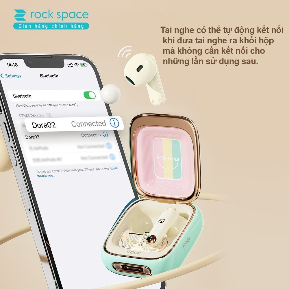 - Tai nghe Bluetooth không dây nhét tai TWS Rockspace Retro Style với cảm ứng thông minh bạn có thể trả lời điện thoại và chuyển bà hát dễ dàng bằng một ngón tay.