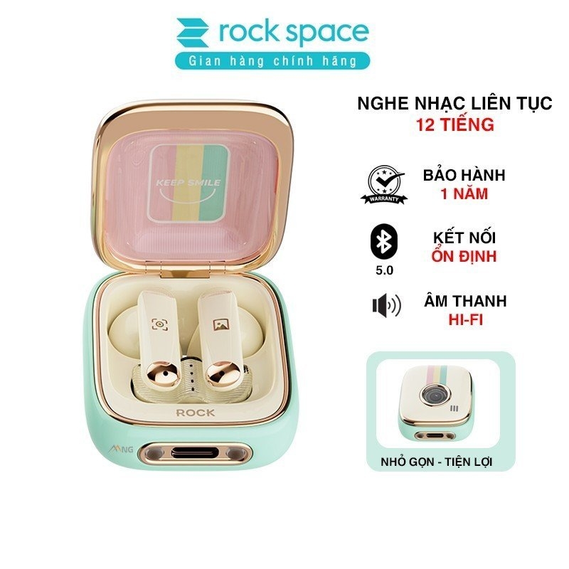 - Tai nghe Bluetooth không dây nhét tai TWS Rockspace Retro Style được thiết kế theo phong cách máy ảnh cổ điển, rất nhỏ gọn và xinh xắn.