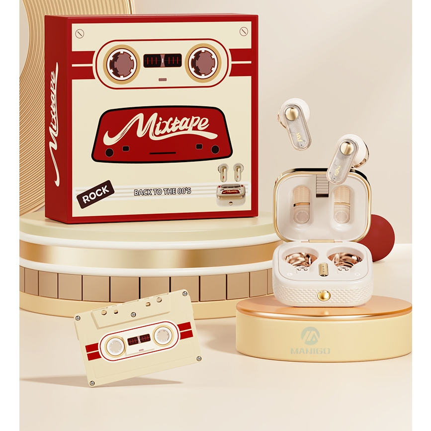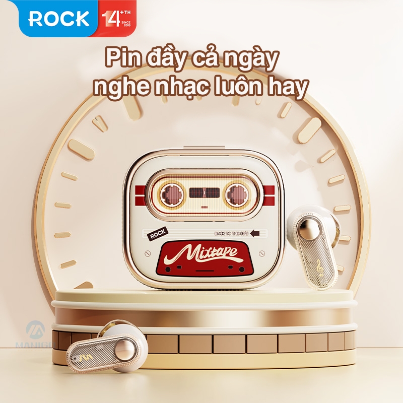 - Tai nghe bluetooth không dây nhét tai Rockspace Retro Mix Tape TWS âm thanh chất lượng cao bluetooth 5.3, độ trễ thấp mang lại cảm giác nghe nhạc ổn định, liên tục