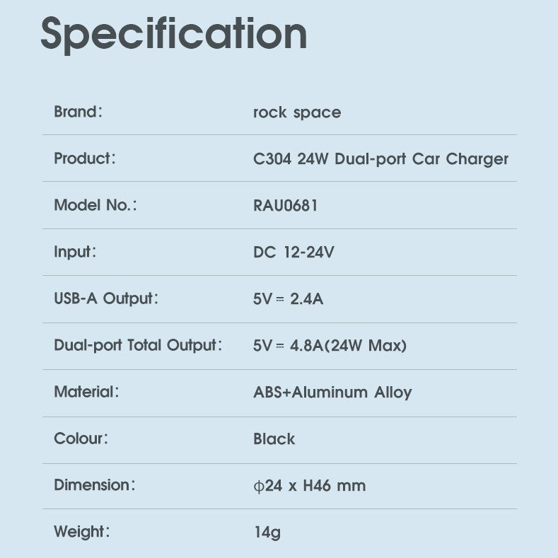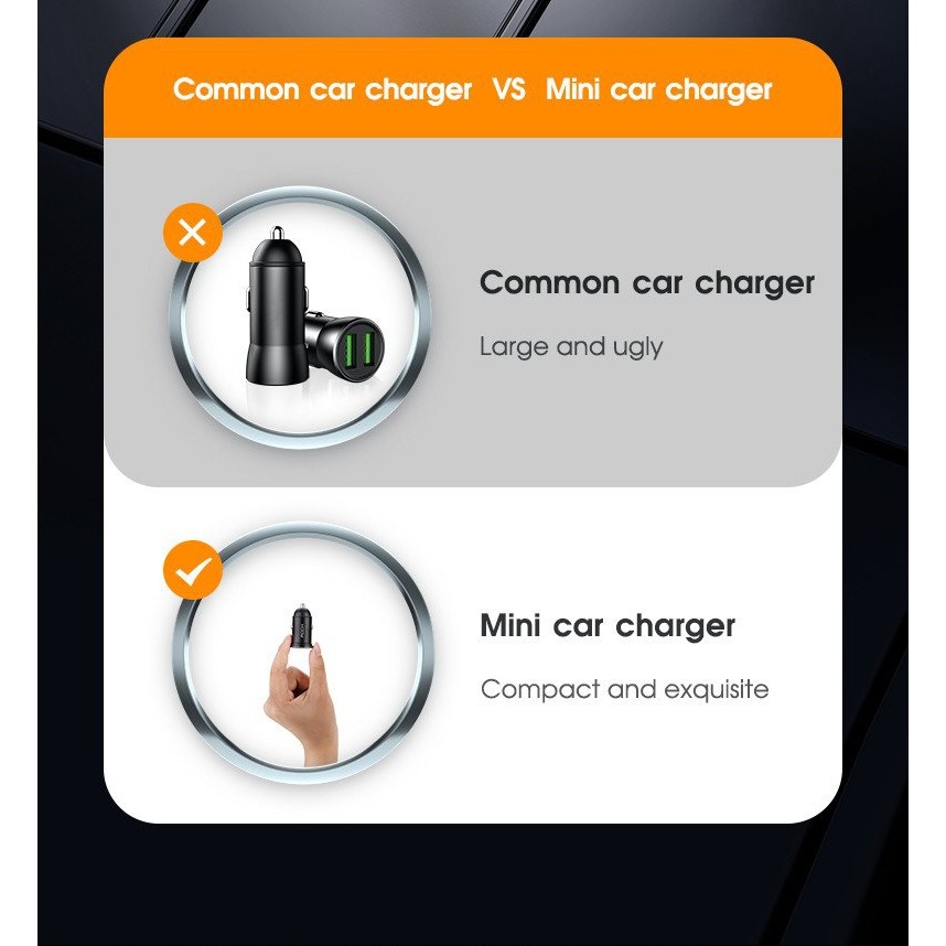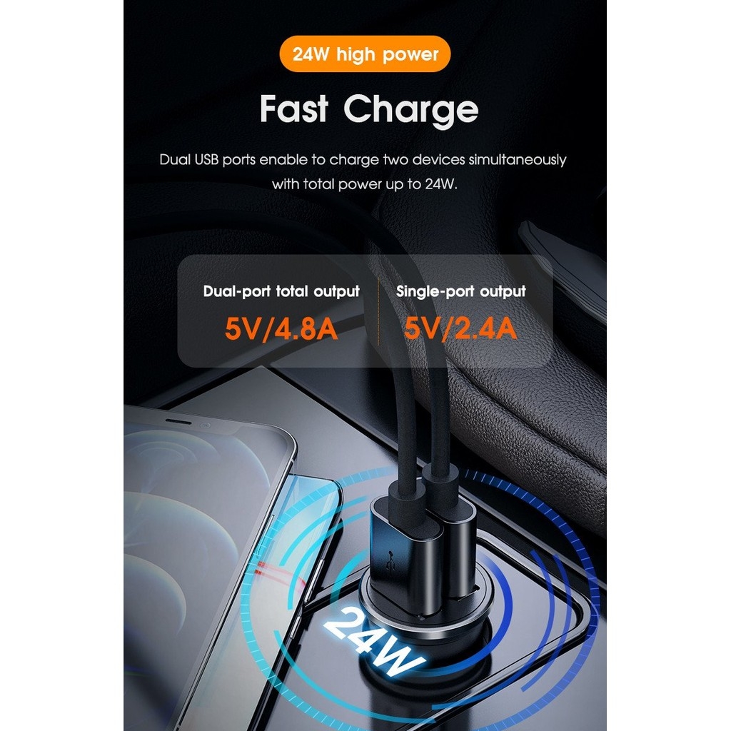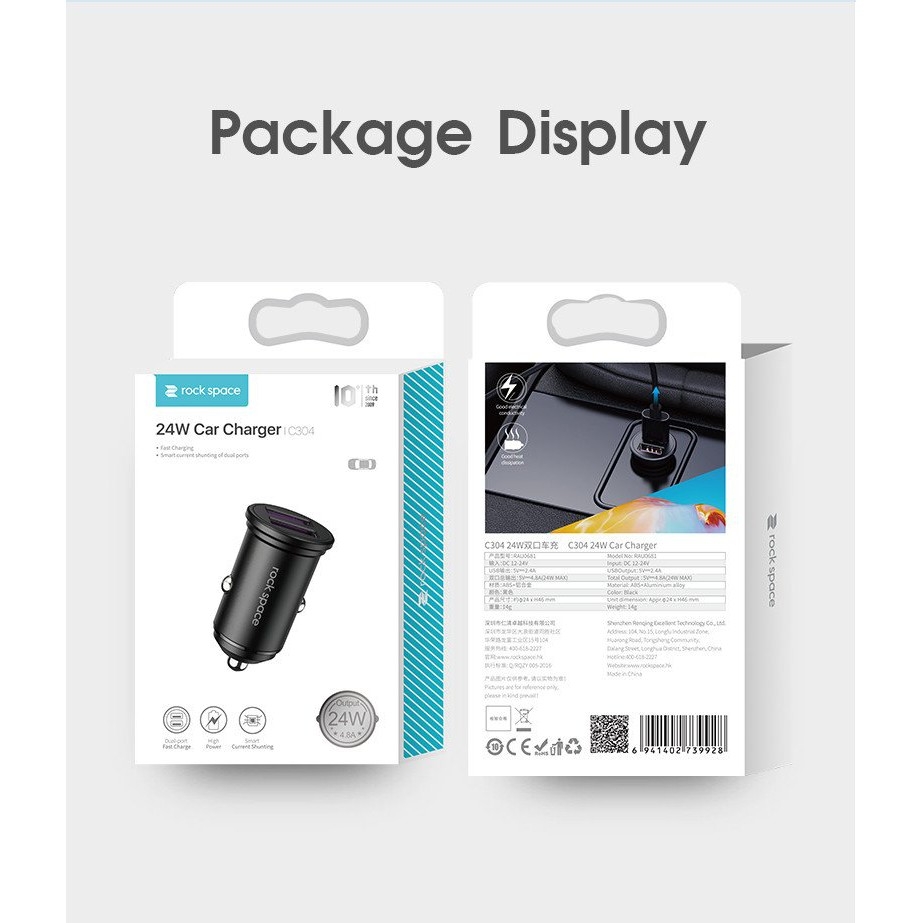 - Tẩu sạc ô tô C304 sạc điện nhanh, có cổng USB kép cho phép sạc đồng thời hai thiết bị với tổng công suất lên đến 24W