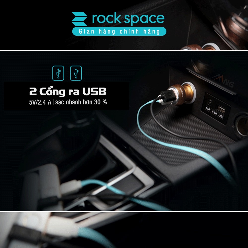 Tẩu Sạc trên xe hơi 2 cổng Rock space Kotor Carcharger